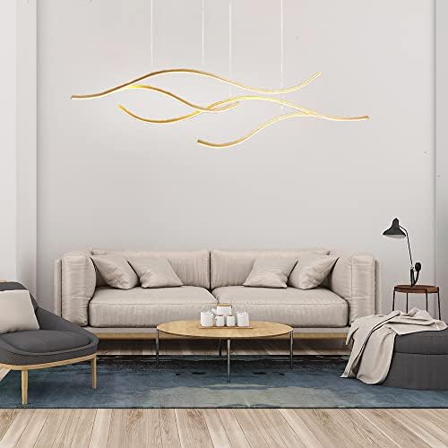 LightInTheBox Modern LED Linear Wave Chandelier - Dimmable Branch Pendant Light for Kitchen Island, Living Room, Dining Room (Gold)