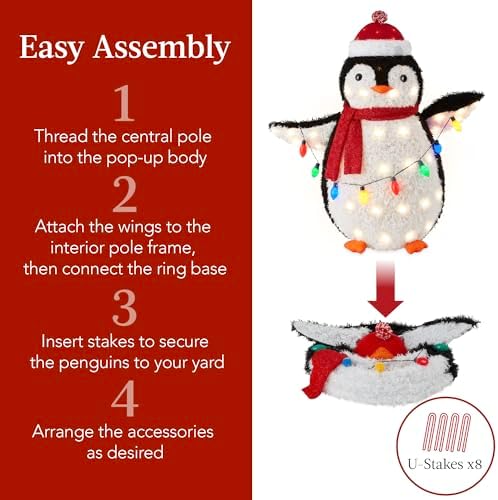 Best Choice Products 2-Piece Lighted Penguin Family, 3ft Pop-Up Outdoor Christmas Holiday Decoration w/ 150 LED Lights, Multicolored Lights - Red