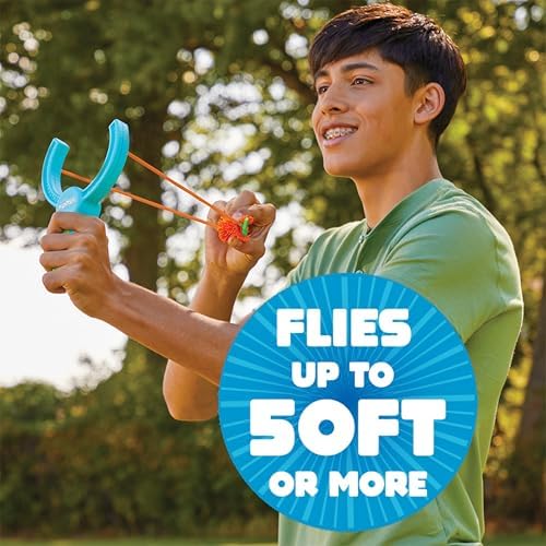 - SHARPSHOOTER - Shoot up to 50ft or more! From its easy-to-grip-and-aim handle to the elasticity of the sling itself, it's a breeze to shoot the Koosh balls high into the sky!