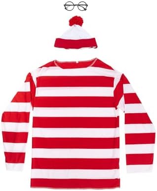 Adult Red and White Striped Shirt Outfit Halloween Cosplay Costume Shirt Hat Glasses Suits