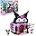 Step into the enchanting spookiness of Kuromi's Haunted House buildable Playset—if you dare! The set is brimming with creepy-cool exterior details like a whimsical spider web, an eerie tree, and a mischievous jack-o-lantern, setting the perfect stage for an unforgettable Halloween adventure! As you enter through the front door, the hinged walls create interior play spaces for Kuromi and her friends to explore. Gather around the table to whip up treats in the candy cauldron by the warm fireplace. The set features posable minifigures of Kuromi, My Melody, and Hello Kitty, who can peer into the future with their magical crystal ball while enjoying a delicious chocolate bar together. Interior details include a candelabra chandelier, spooky wallpaper, and a buildable grandfather clock. This 359-piece construction set stands over 7 inches tall and 12 inches wide when fully opened. All BLDR bricks are compatible with major construction brands, so you can collect them all and build out the world of Hello Kitty and Friends!