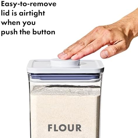 We designed the OXO Good Grips 8-Piece POP Container Baking Set to keep everyday baking essentials fresh and pantries organized. Airtight, stackable, space-efficient, and now completely dishwasher safe, these containers can be customized to fit any space. Each container is carefully sized to fit key ingredients like 1 pound boxes of brown sugar, 5 pound bags of flour and sugar, baking soda, baking powder, chocolate chips, coconut flakes and more. Our solutions-focused POP Accessories help you make the most of POP and secure neatly to the underside of lids. The ½ Cup Scoops are perfect for measuring, and the Brown Sugar Saver keeps brown sugar soft and clump free. With a handy fill line to guide you, curved corners for smooth dispensing and sturdy, BPA-free construction, POP Containers take organizing to the next level. For best results, always use the button to open and close. Do not carry POP Containers by the lid.
