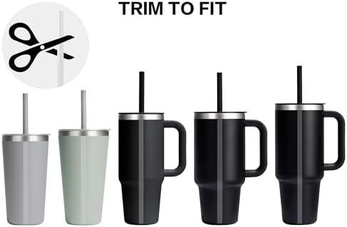 Straws compatible with Hydro flask water bottle with straw caps(12,18,20,21,24,32,40,64 oz).For Hydro Flask All Around Tumbler with Press-in straw lids(12,16,20,24,28,32,40 oz).Trim to fit your cup,according to different capacities.
